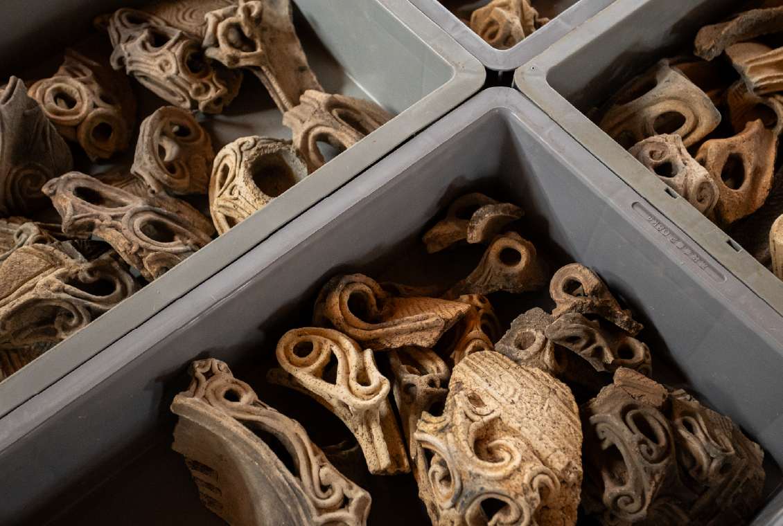 2階は、出土した土器の収蔵庫と、資料を整理・保存するための作業スペースとなっています。